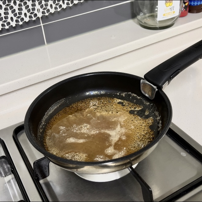 2. 설탕이 물에 다 녹아서 끓기 시작하면