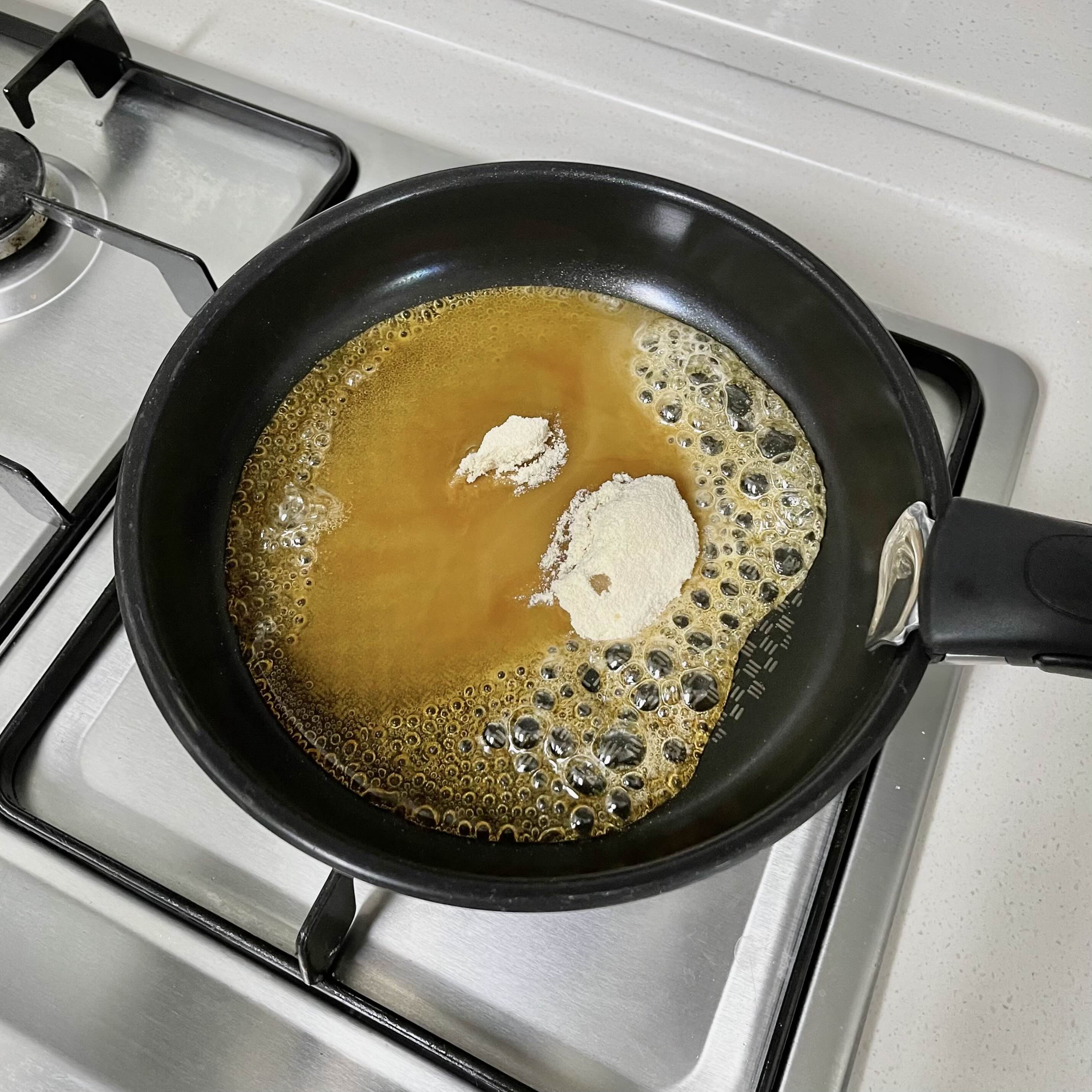 설탕 결정이 녹고 캐러멜 색이 나오는데요.