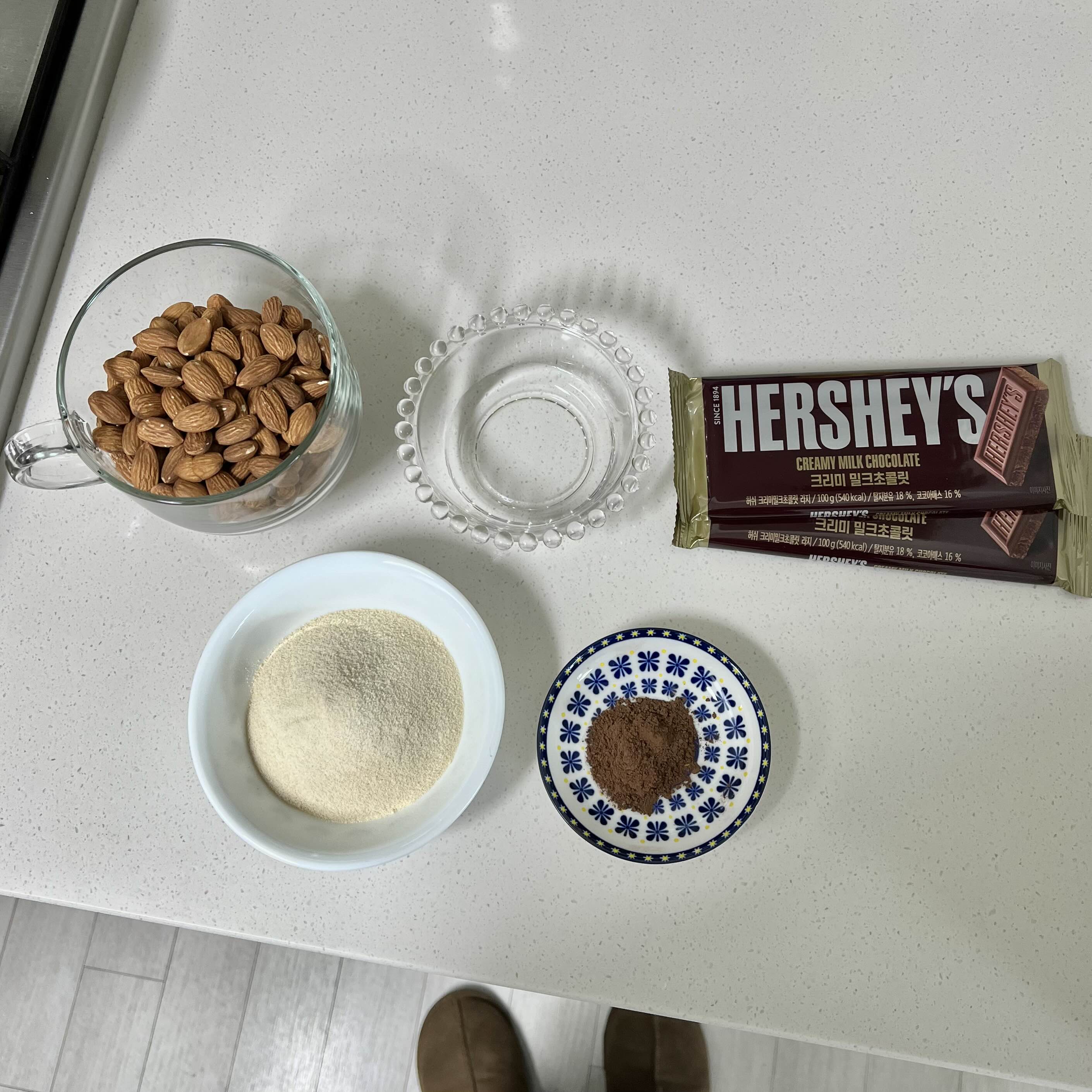 물 30g, 설탕 100g, 코코아 가루 1~2스푼