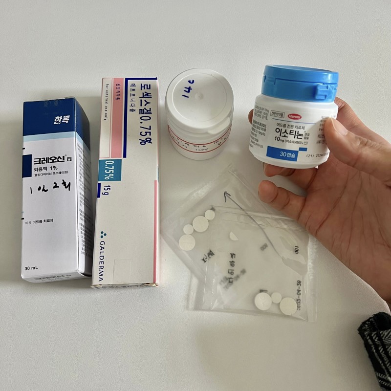 항생제 및 곰팡이균 치료제,이소티논(피지 억제제), 그리고 스테로이드(먹는 약)