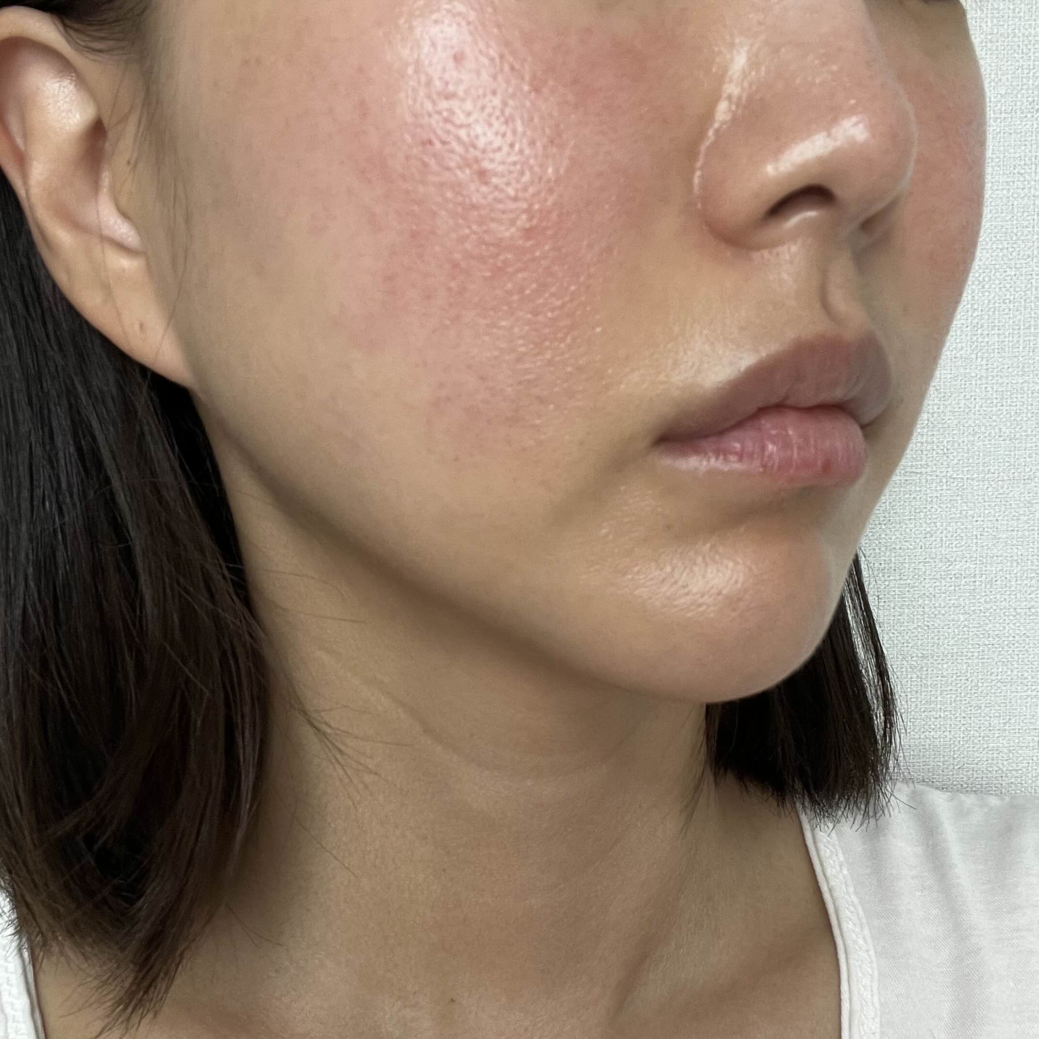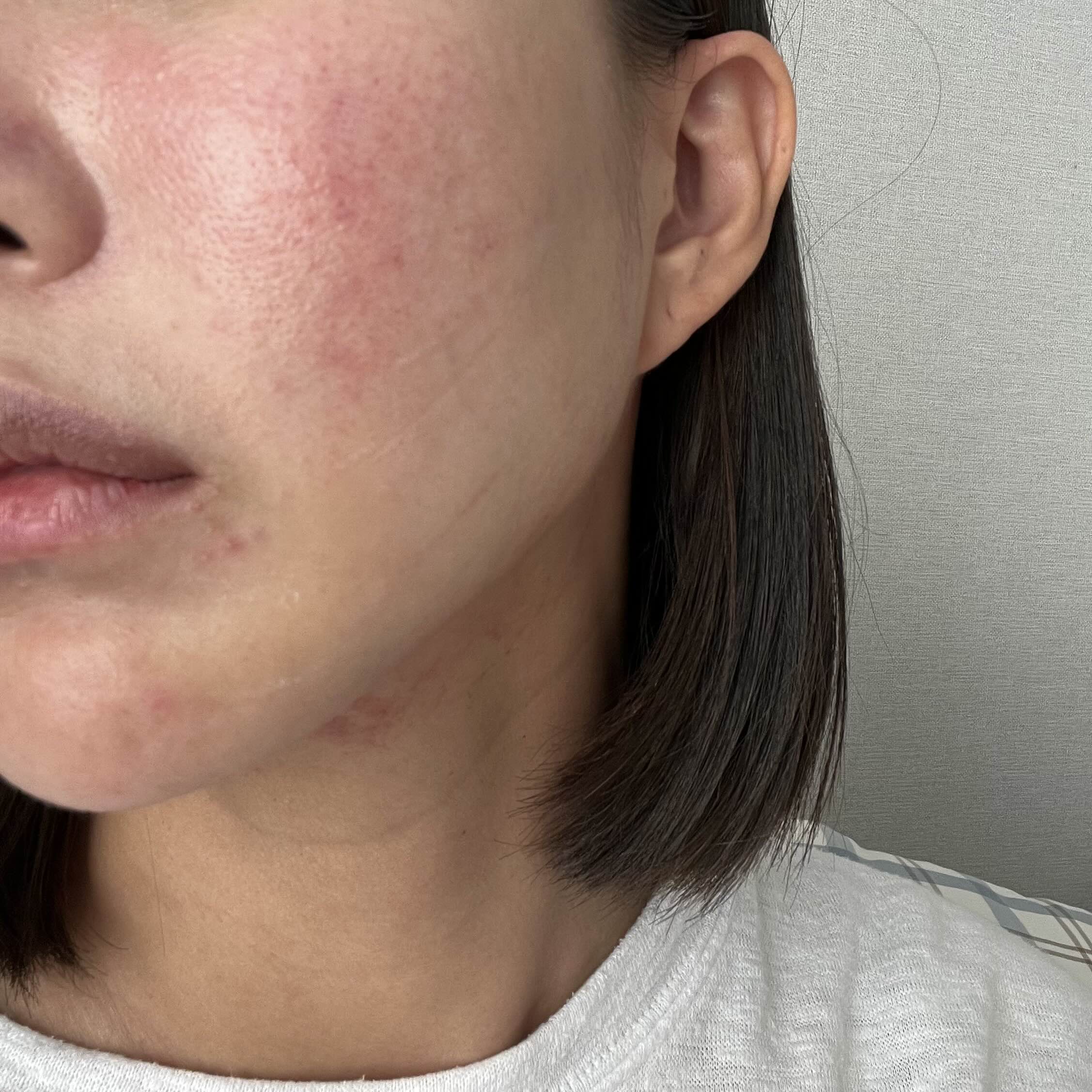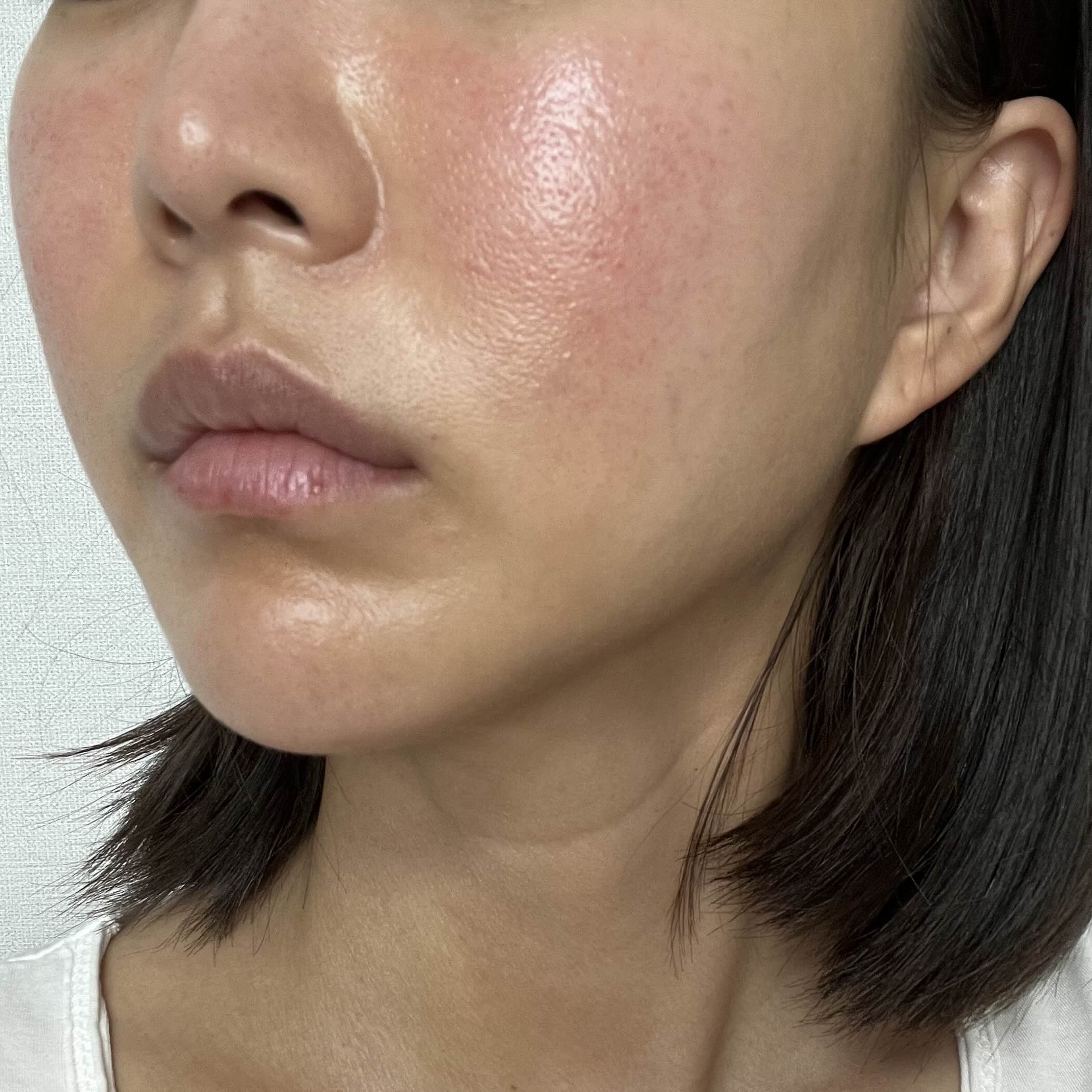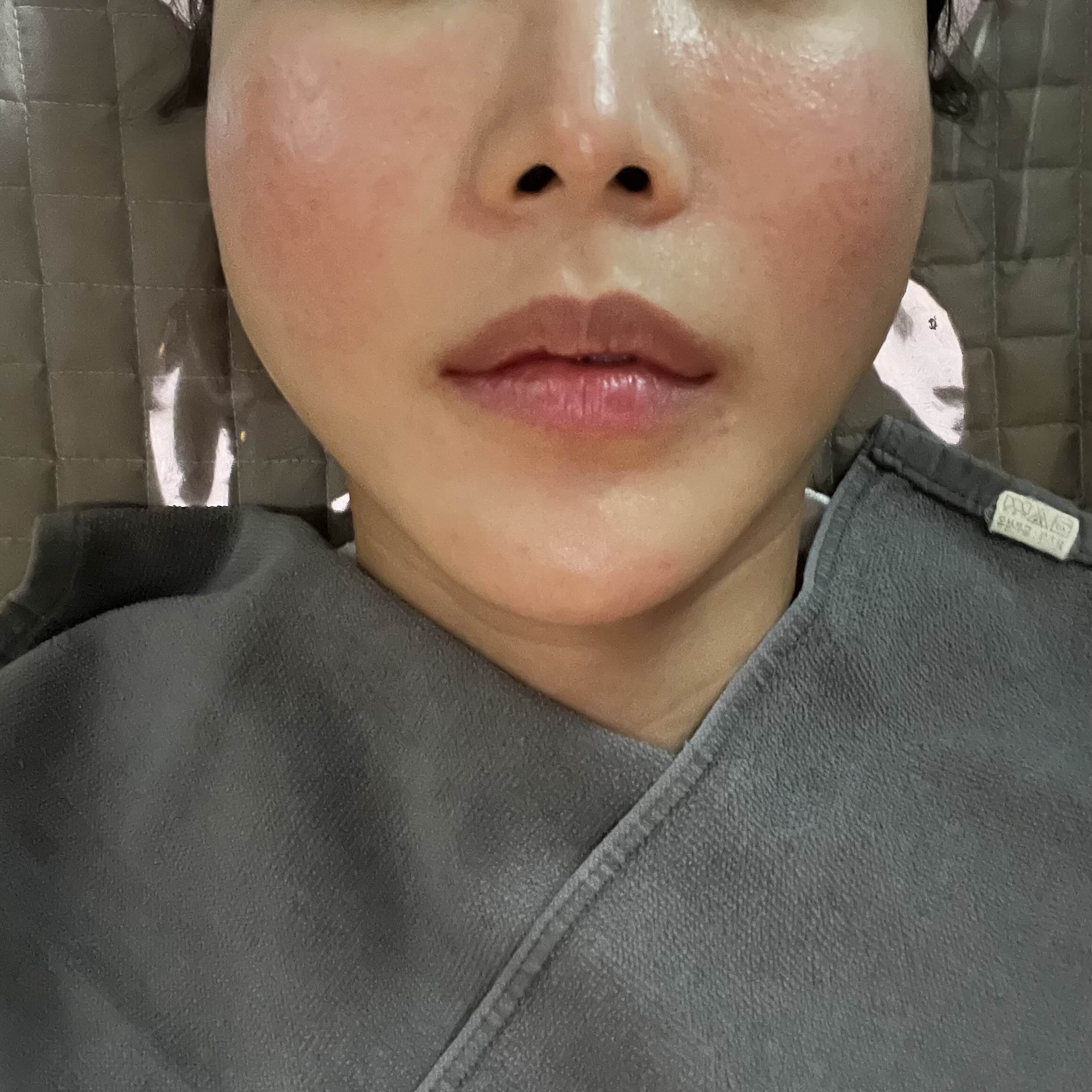 피부 자극을 받아서 얼굴이 조금 빨갛고