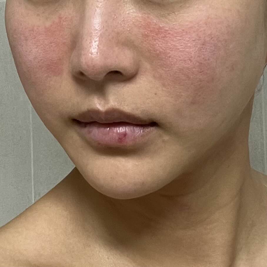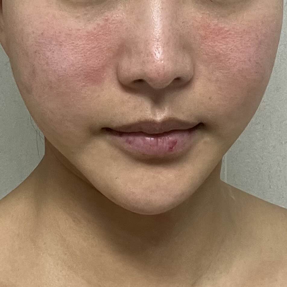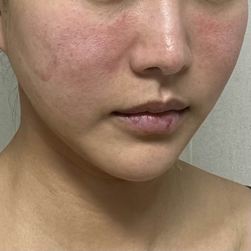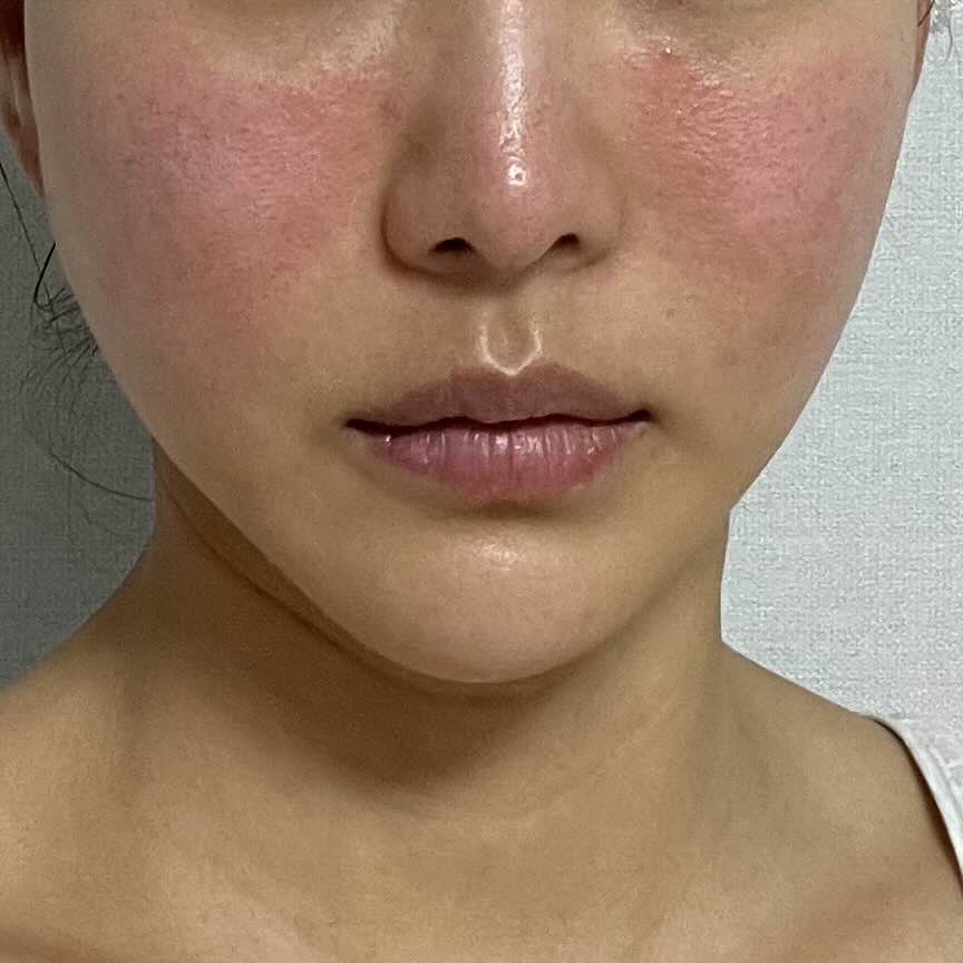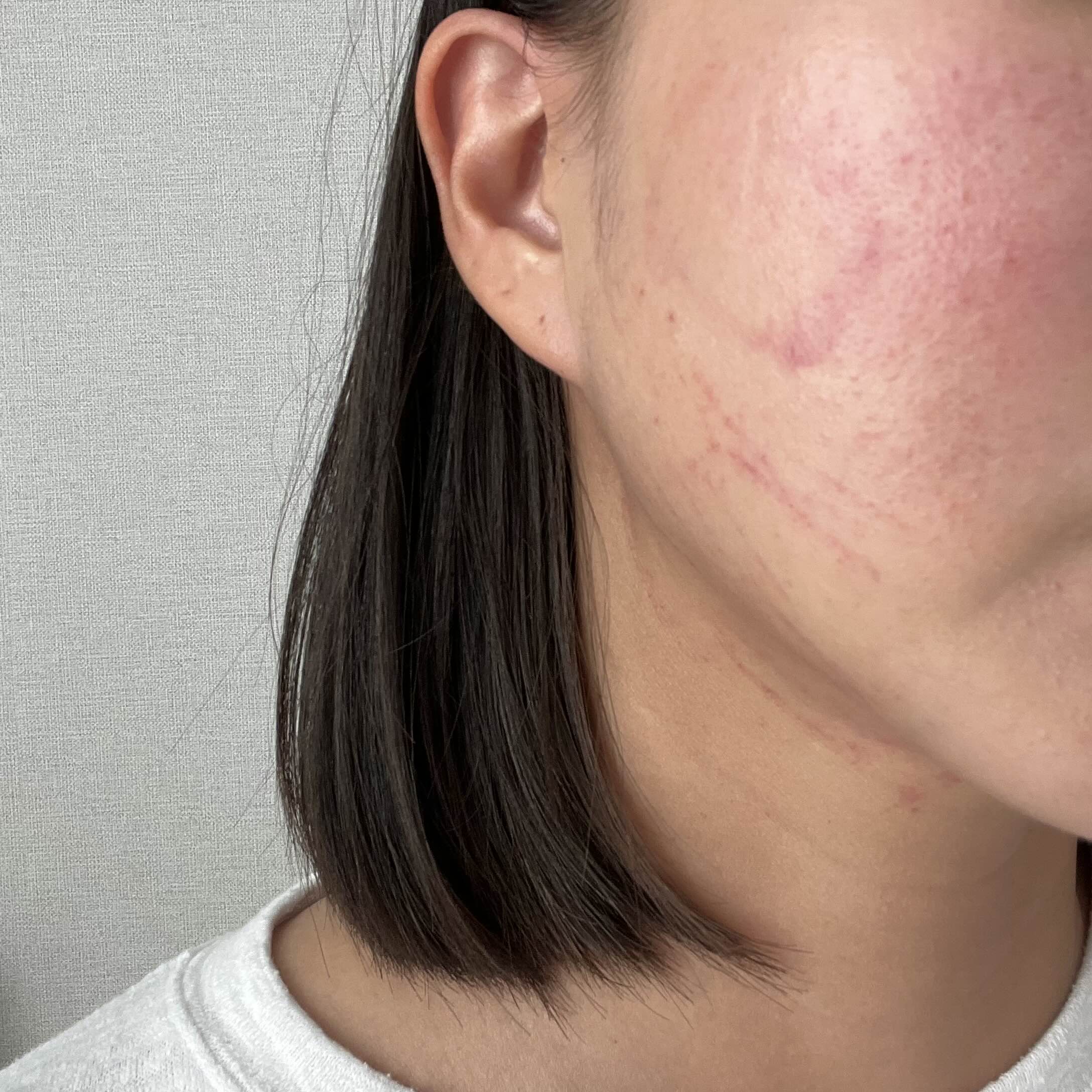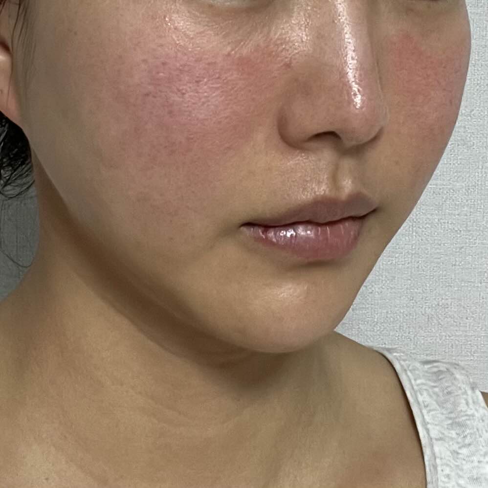 피부 자극을 받아서 얼굴이 조금 빨갛고