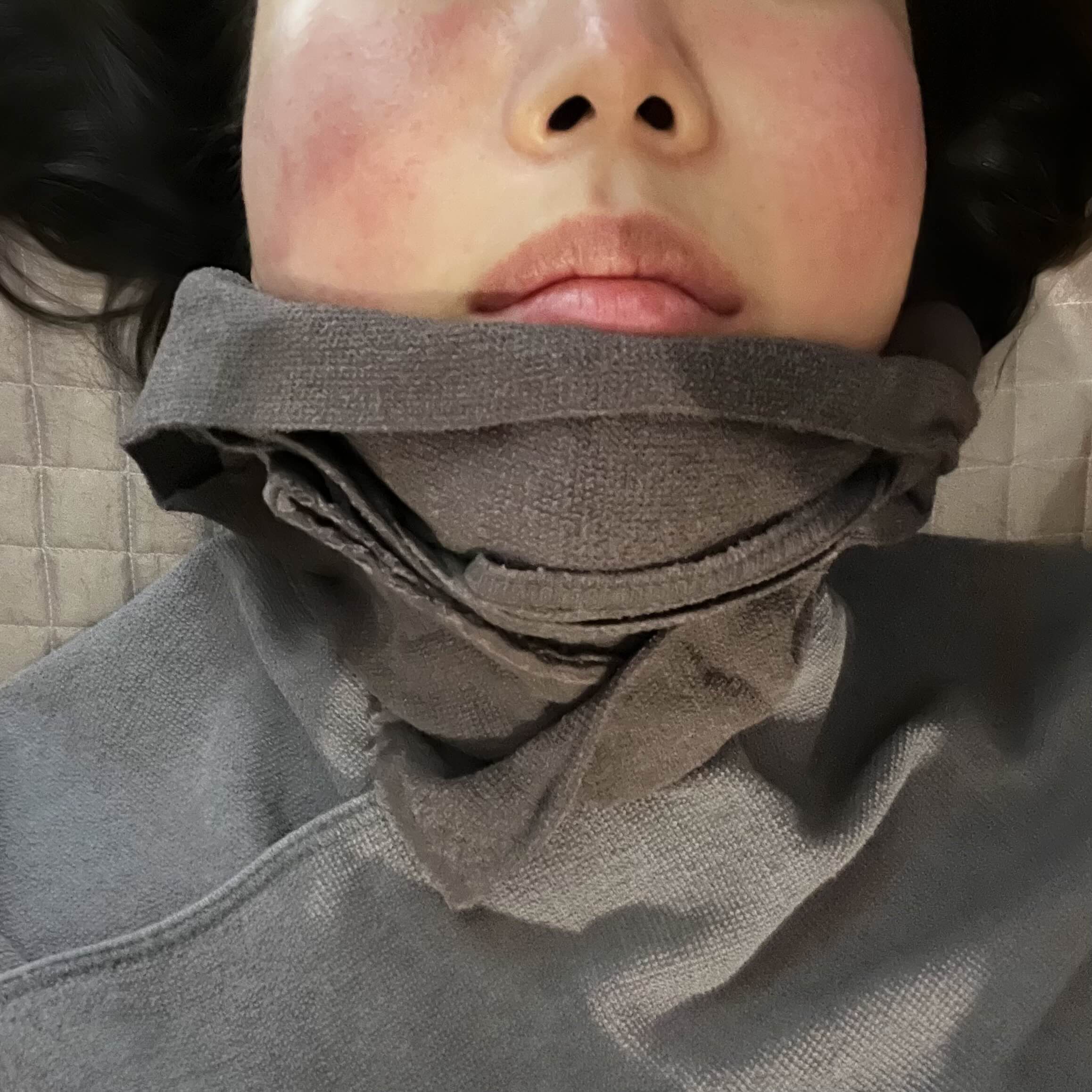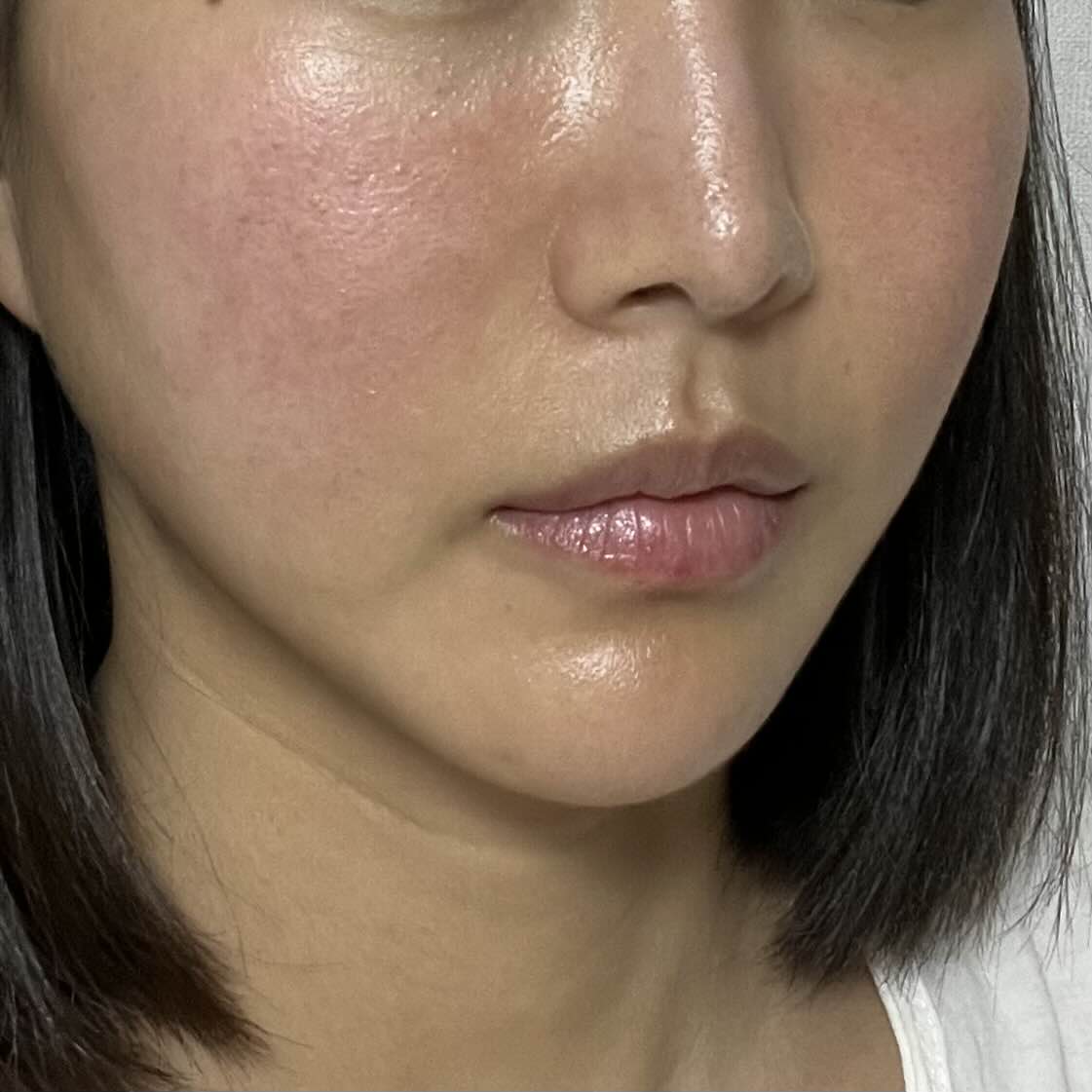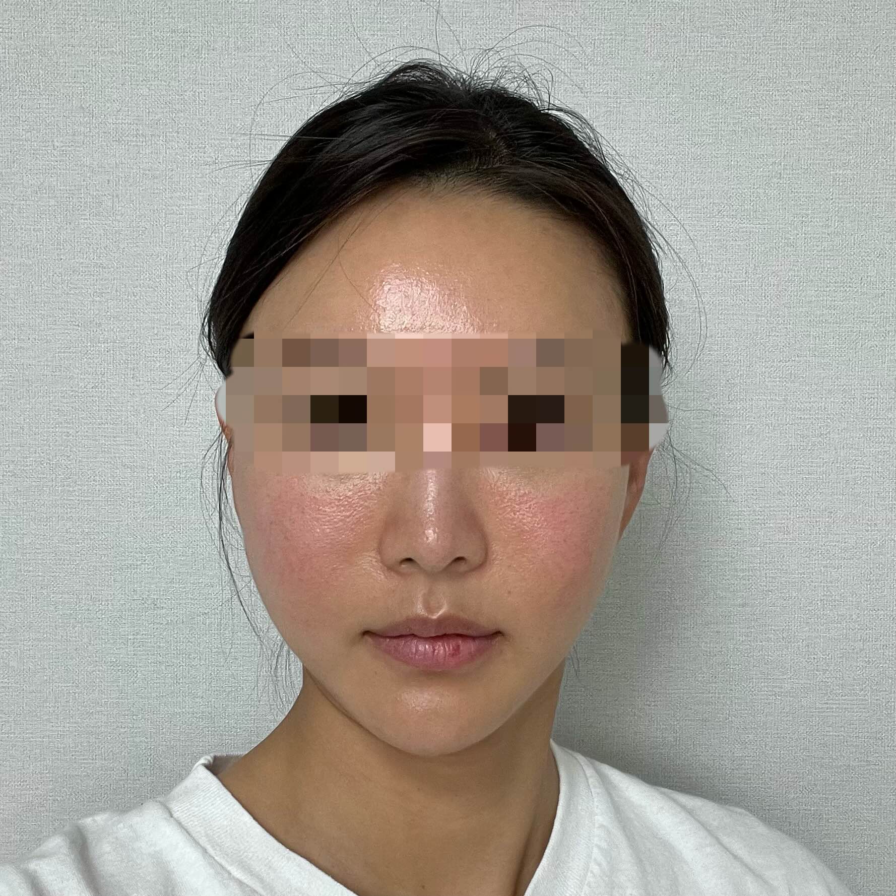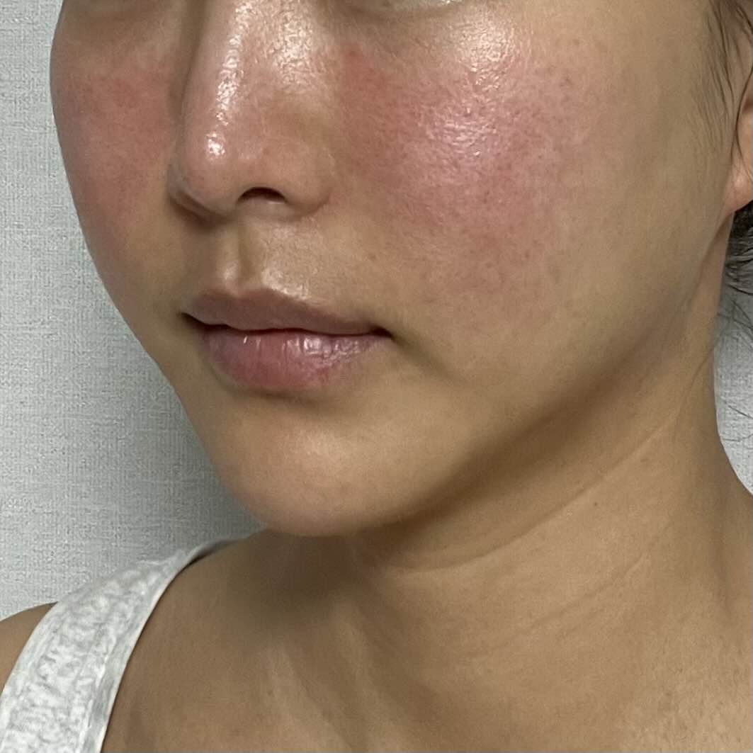 피부 자극을 받아서 얼굴이 조금 빨갛고