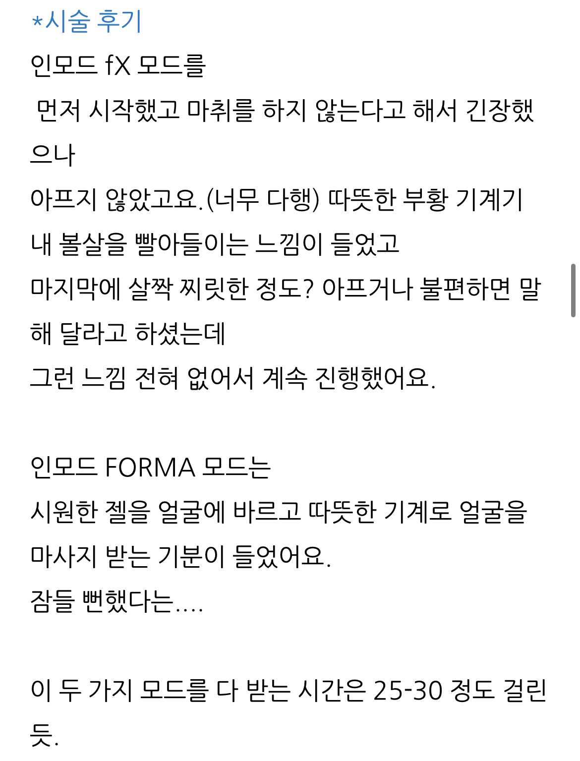 인모드 시술도 너무 좋은 거 같아요.