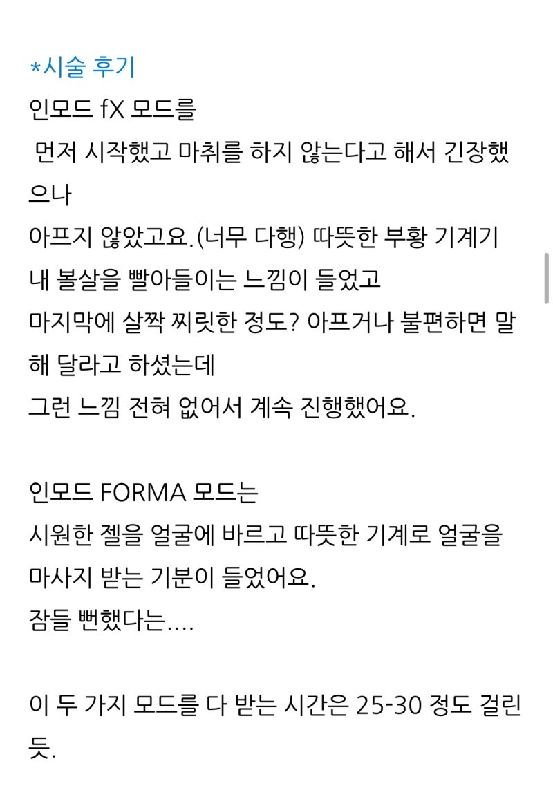인모드 3차 시술을 받고 많이 개선이 되었어요.