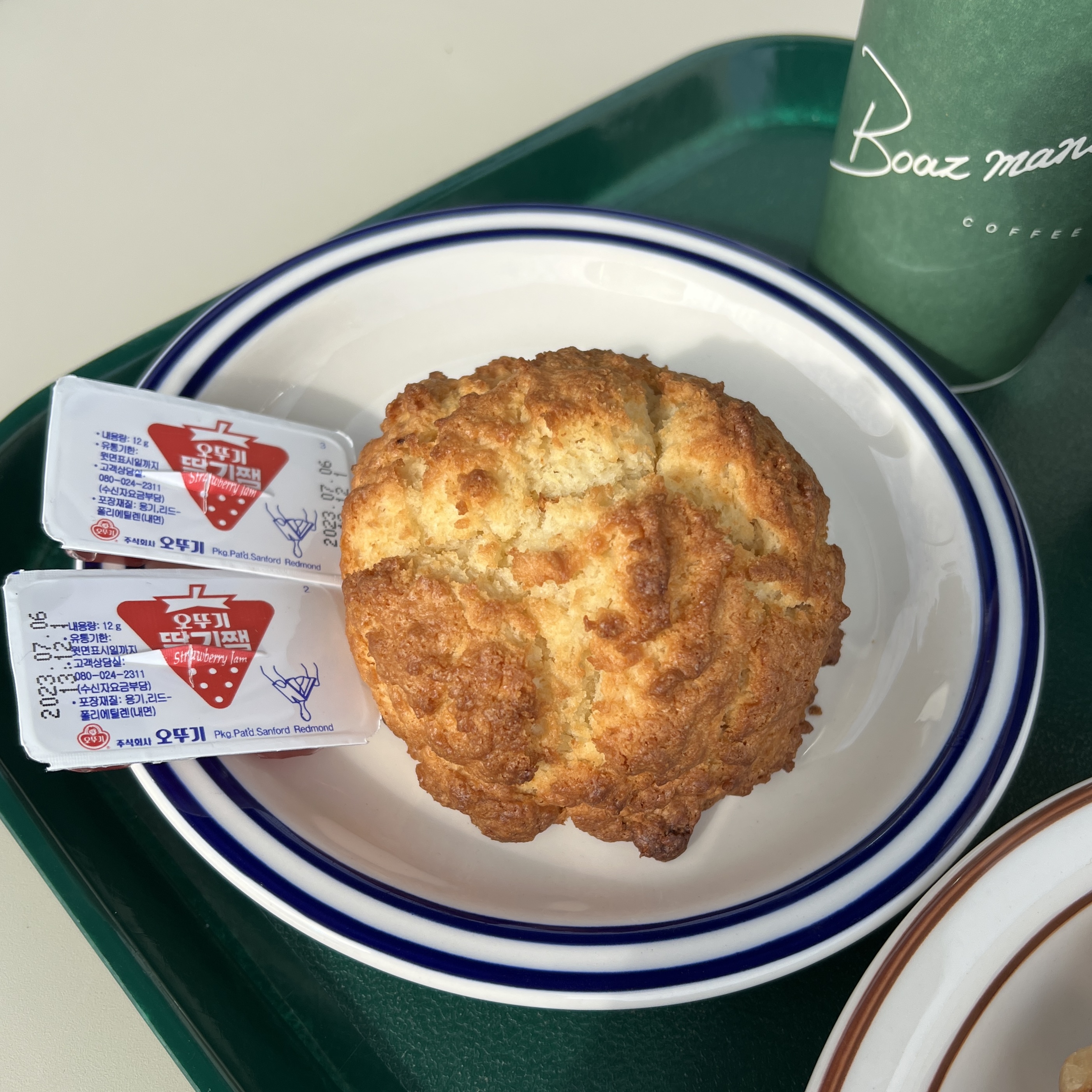 비스켓 사이즈도 남달라요. 딸기잼도 더 달라고 하니까