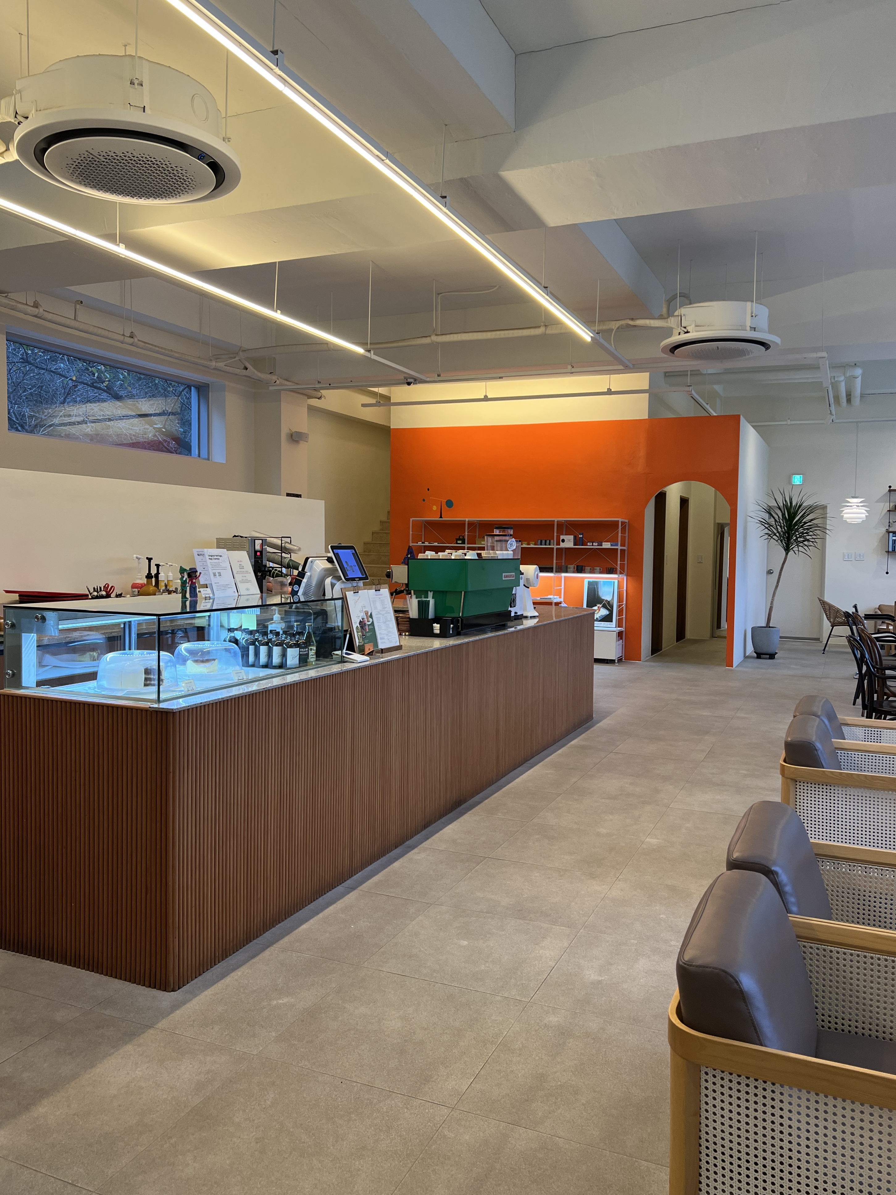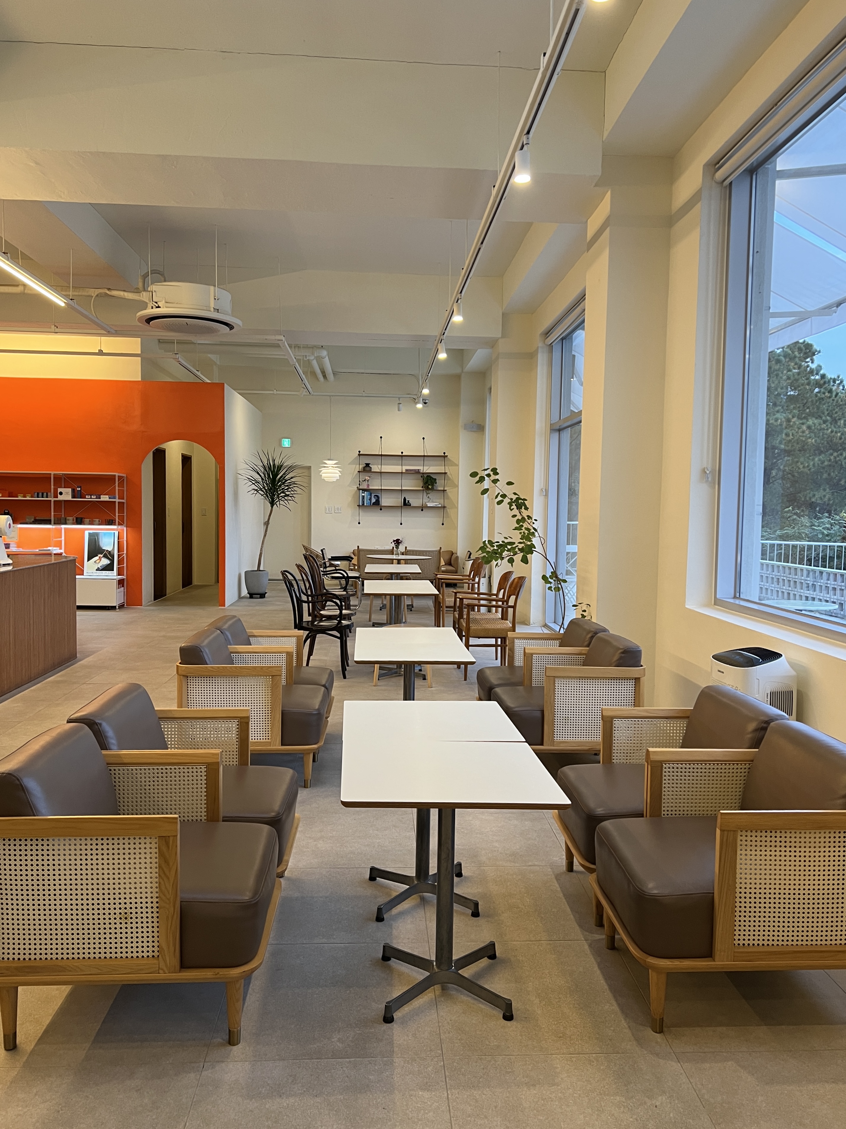 카페 1층을 살펴볼게요. 오렌지색 공간이 화장실이에요.