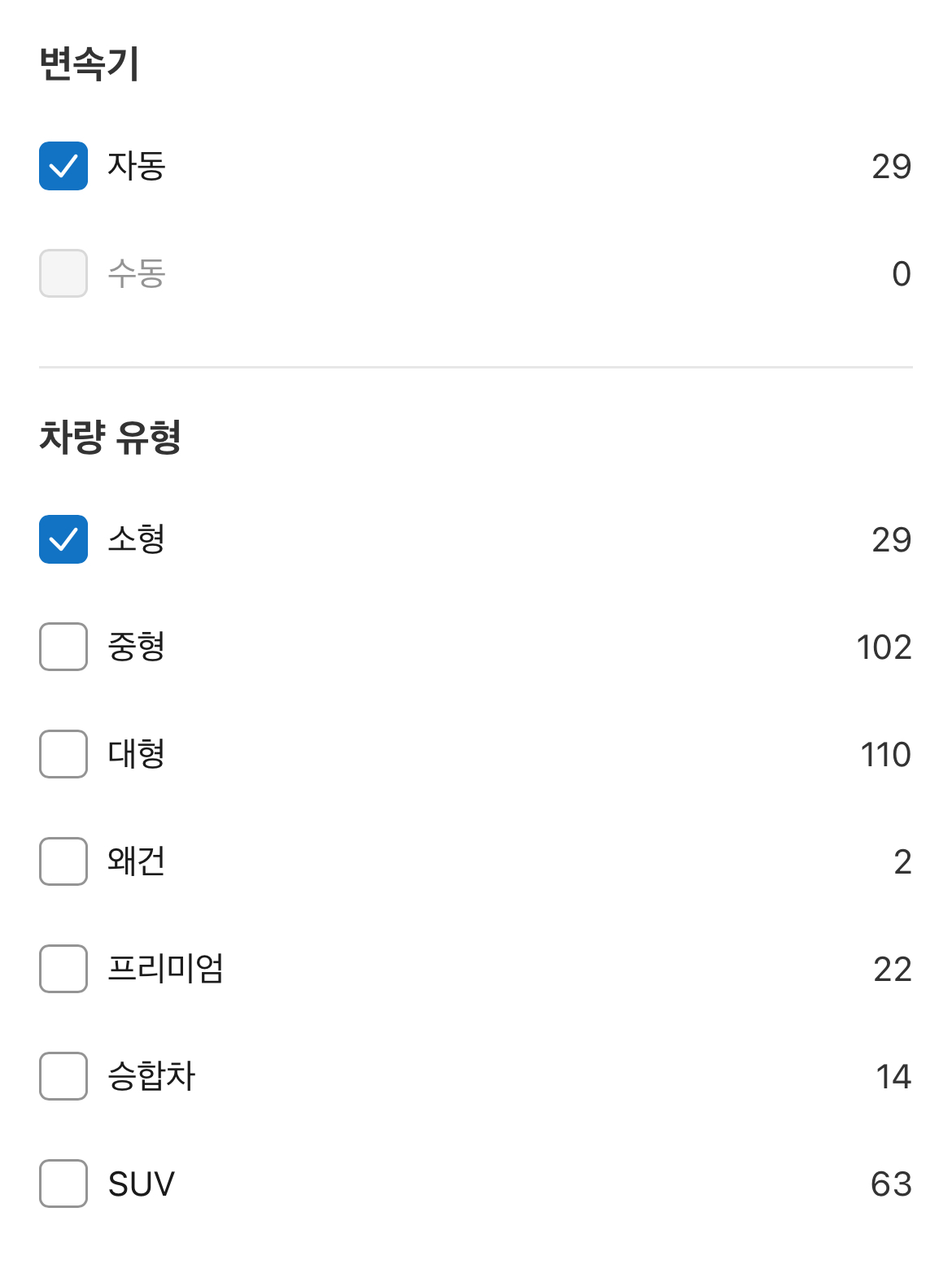 수동, 자동, 차량 사이즈를 선택하면 된다.