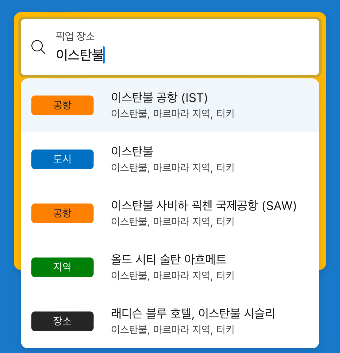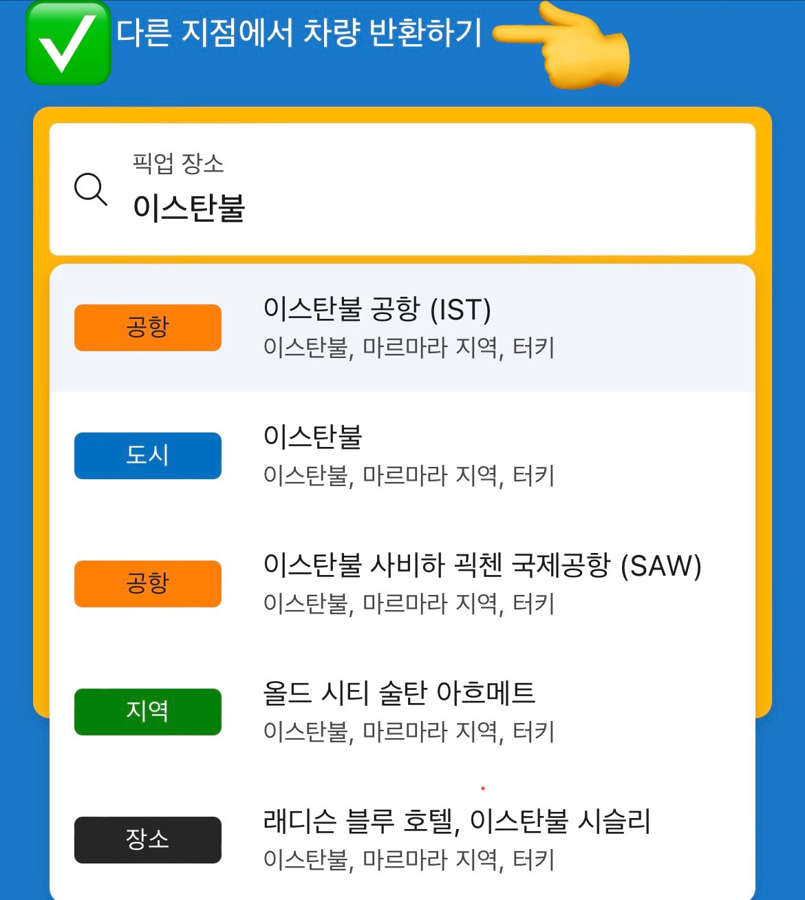 사비하괵첸 공항으로 픽업 및 반납 예약을 했다.