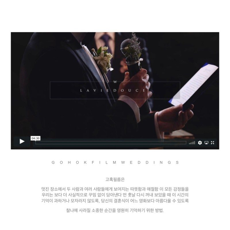 다른분들은 본식영상을 많이들 안하시는걸로 아는데요. 저도 처음엔 “뭐 영상까지...” 이런 생각을 했었어요. 그런데 고혹필름을 알고나서