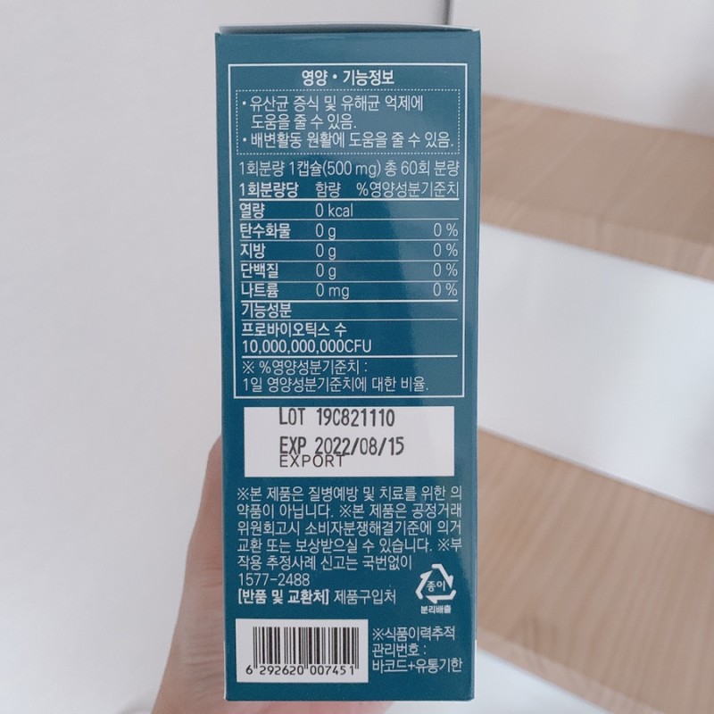 그리고 생균보호포장인지 아닌지 확인도 하셔야되구요. 베지캡슐(식물성캡슐)인지 아닌지도 중요하구요. 유산균 먹이가 들어가 있는지도 반드시 확인해야돼요.