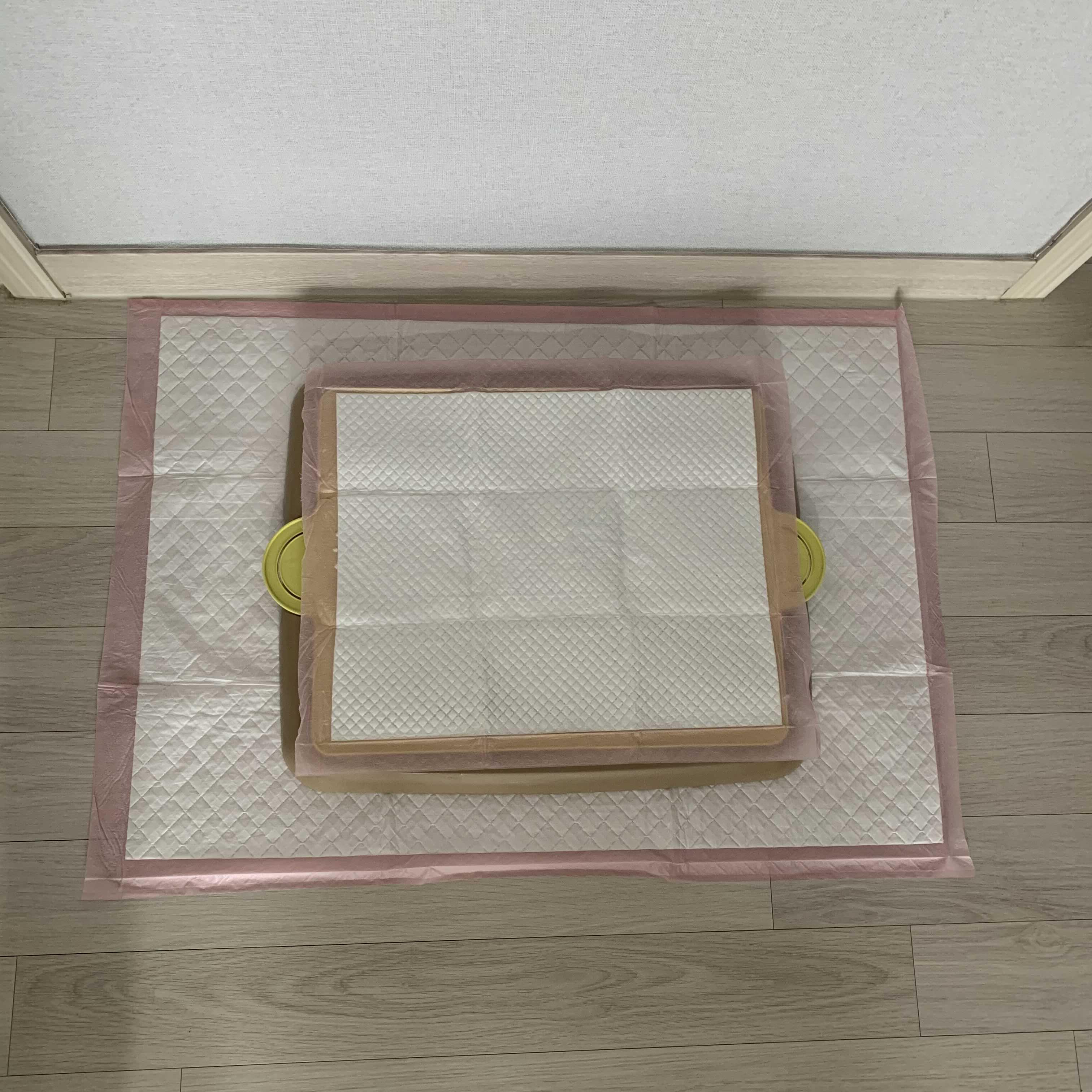 엄마가 주신 배변판 위에 배변패드를 깔아서