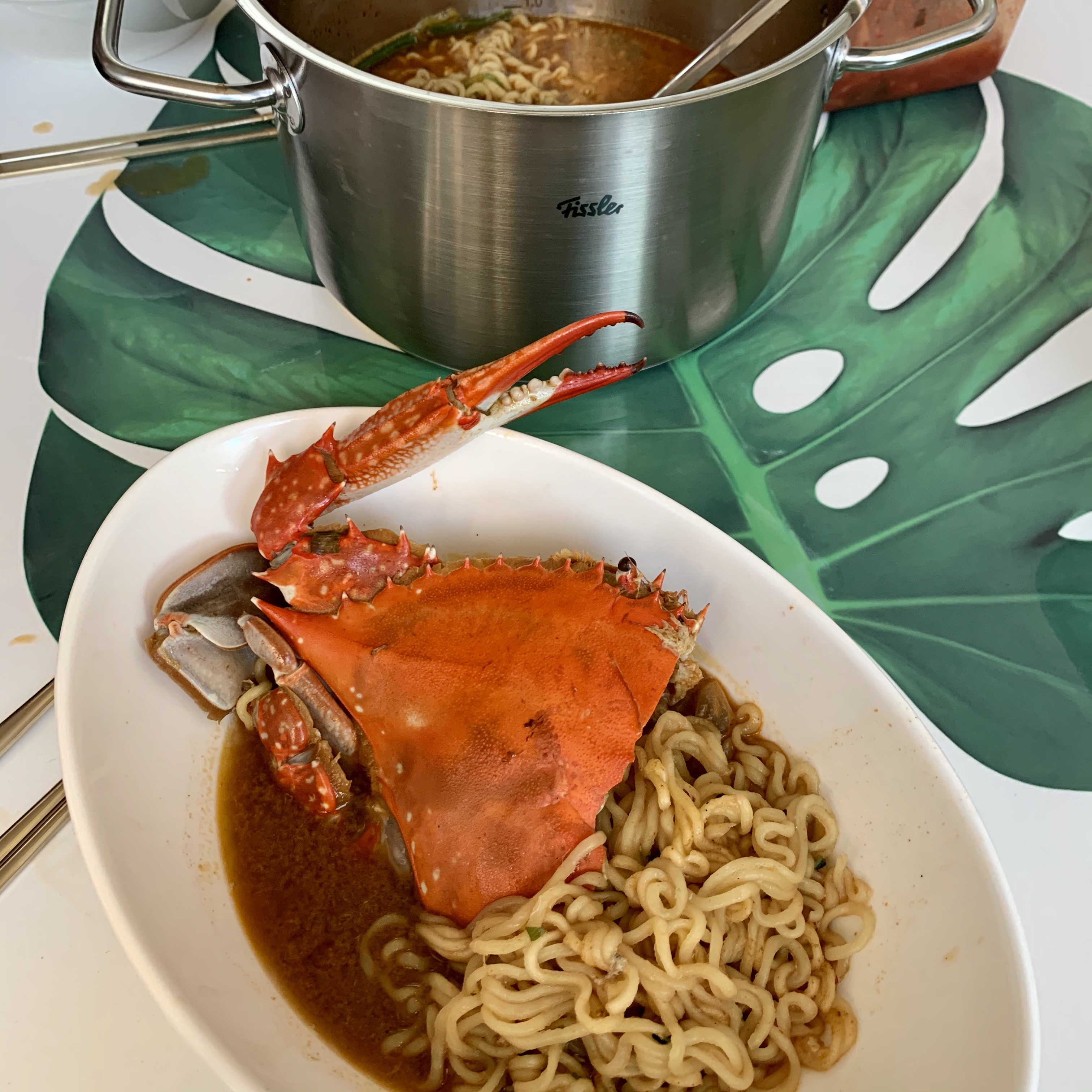 이렇게 꽃게 라면을 해 먹어봤어요!