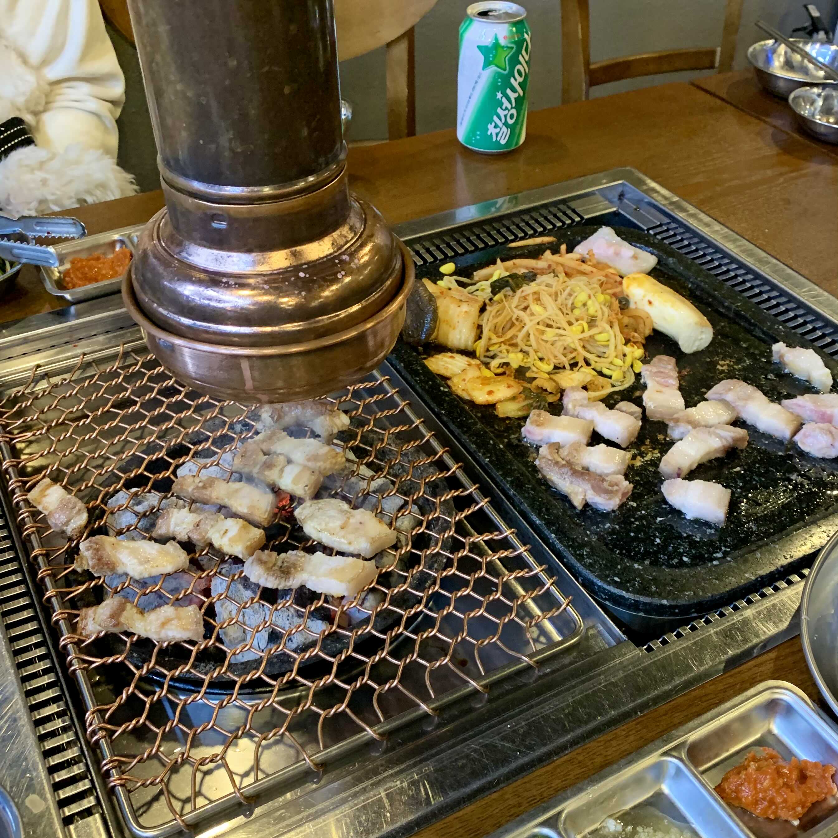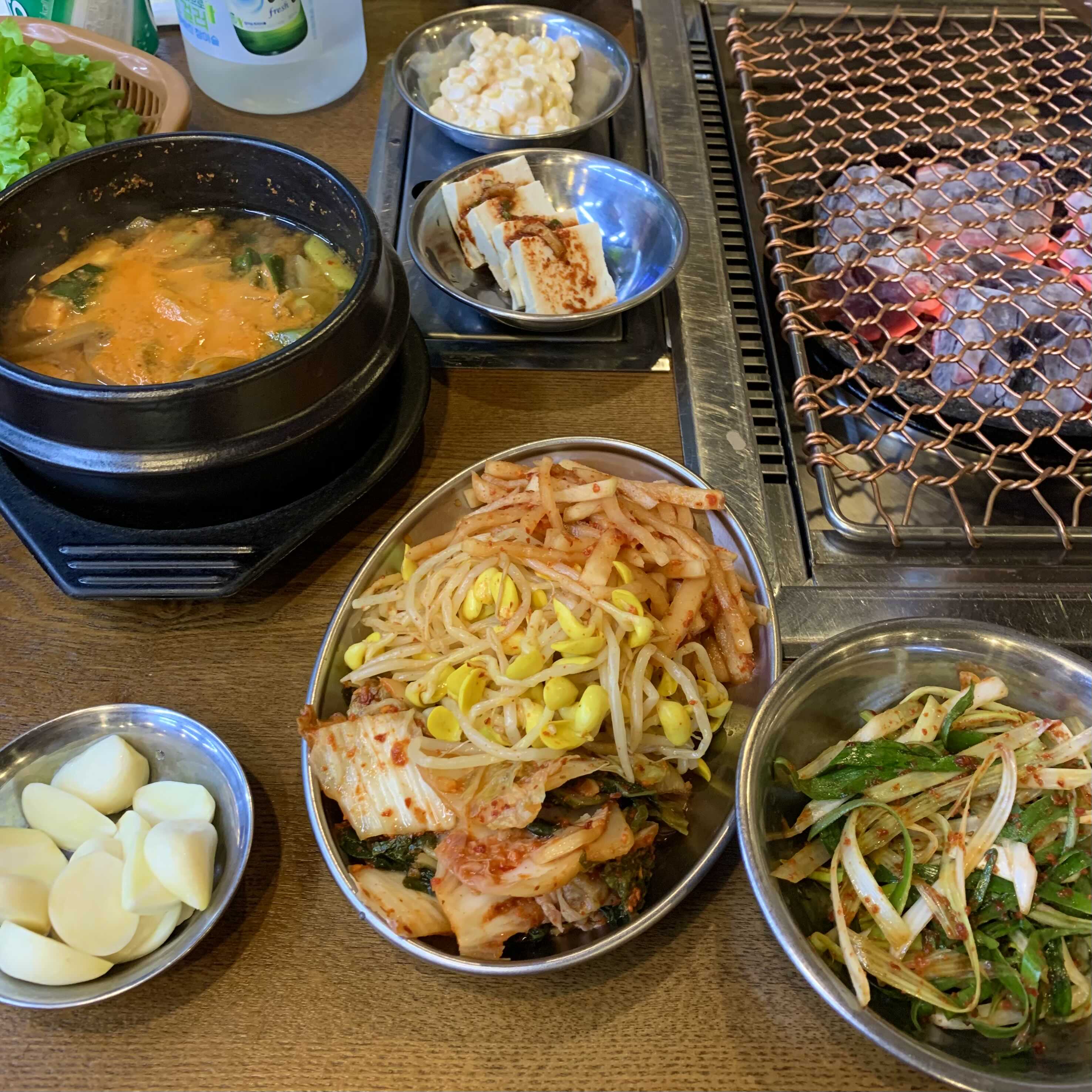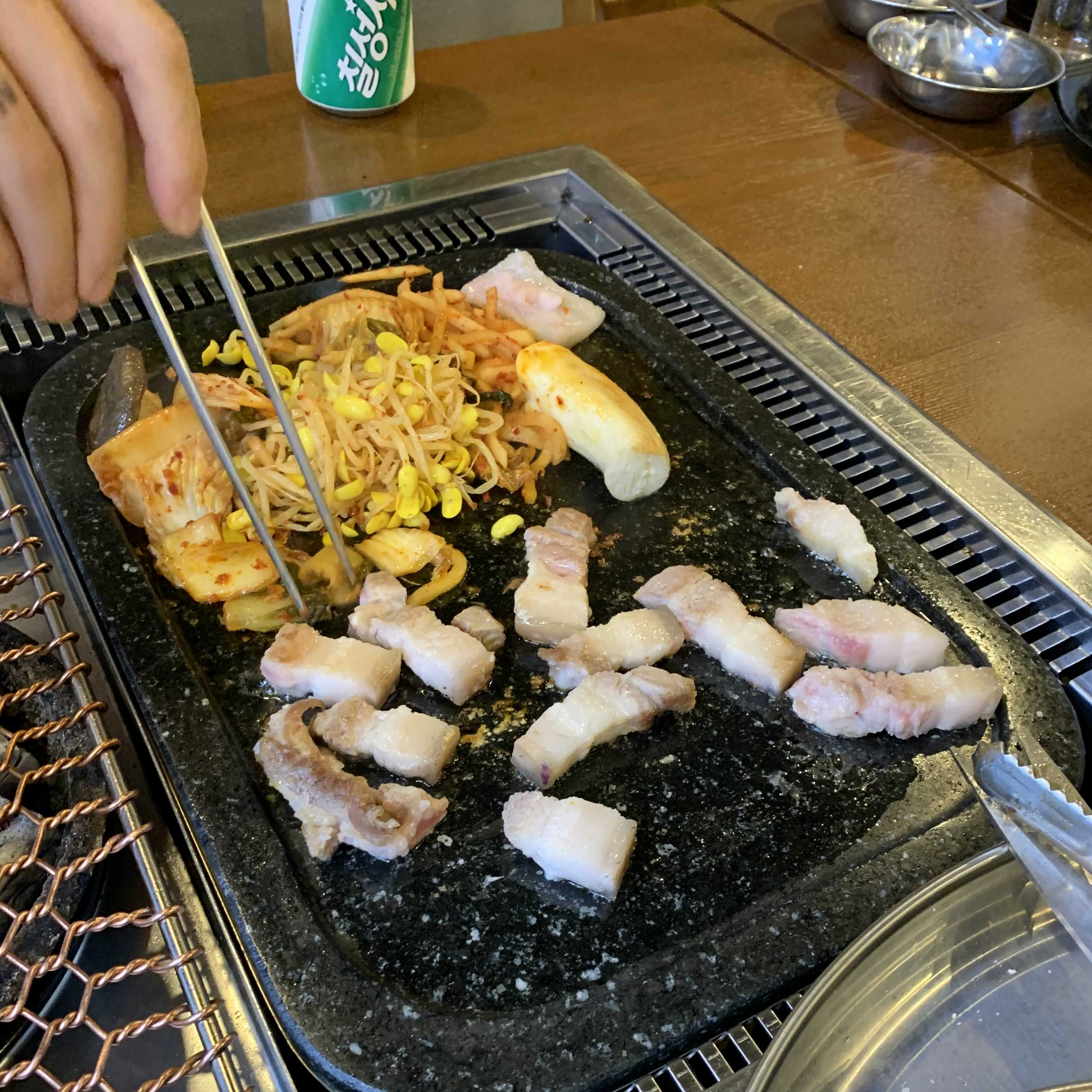 콩나물이랑 김치도 고기랑 같이 올려주고