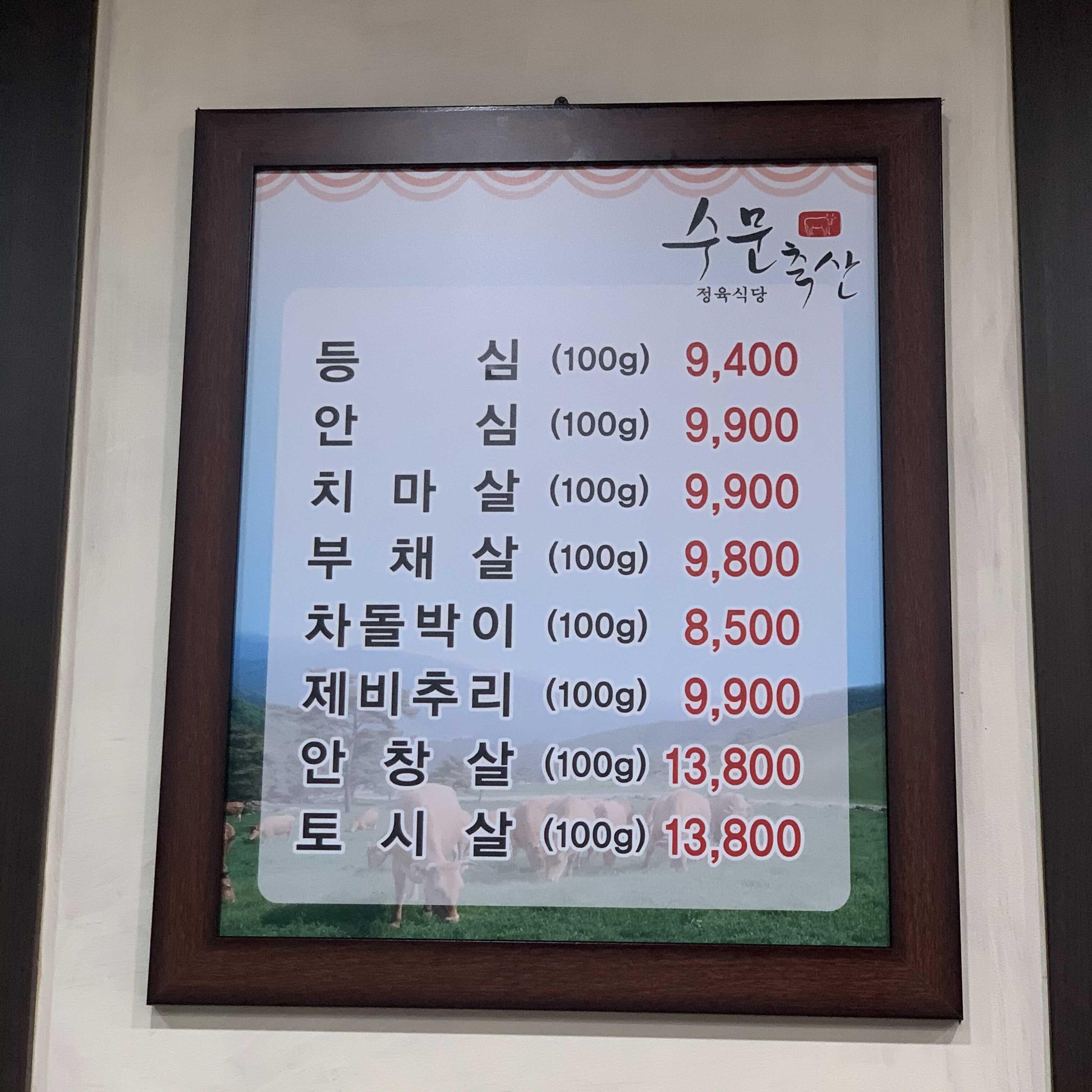 수문은 간&천엽을 서비스로 줘요.