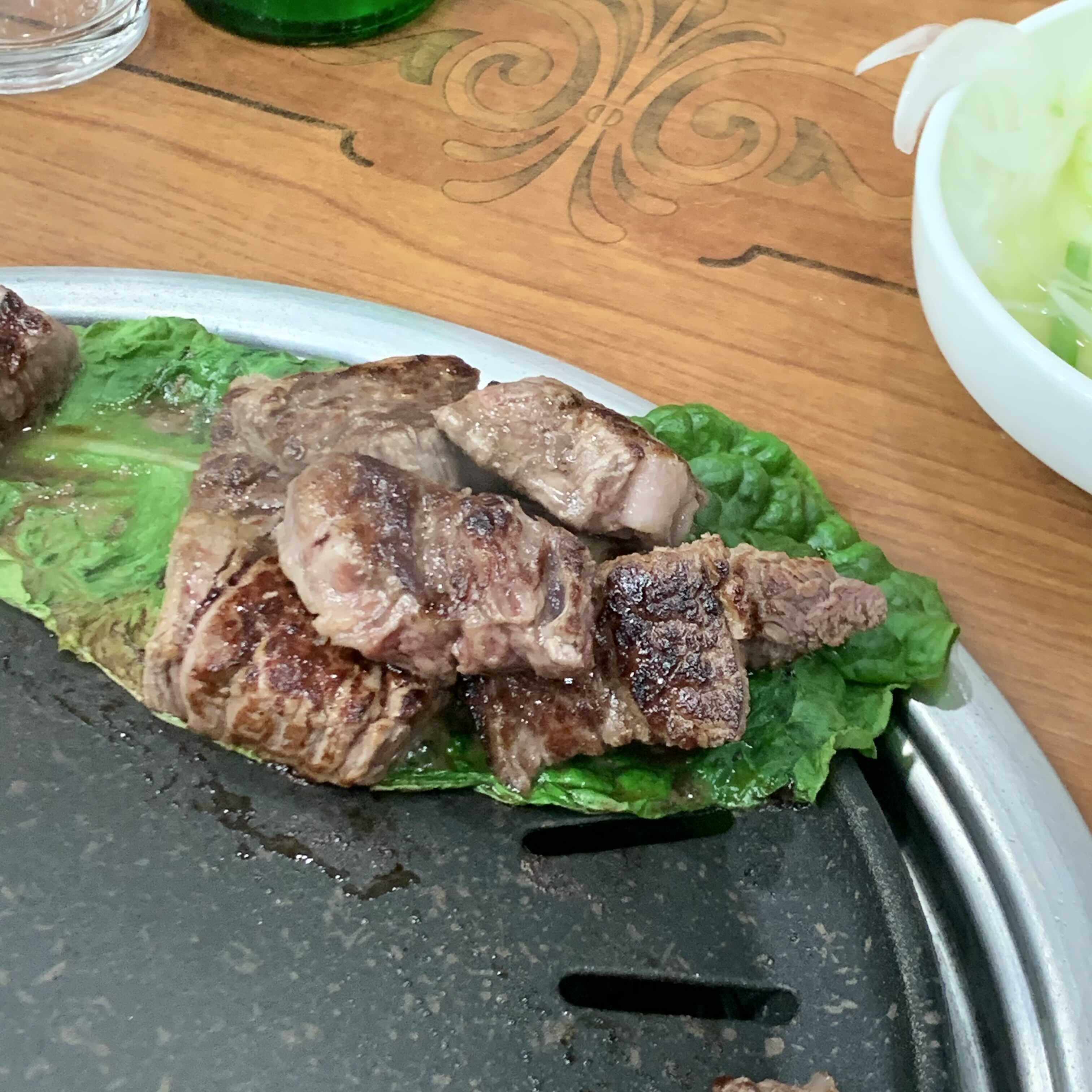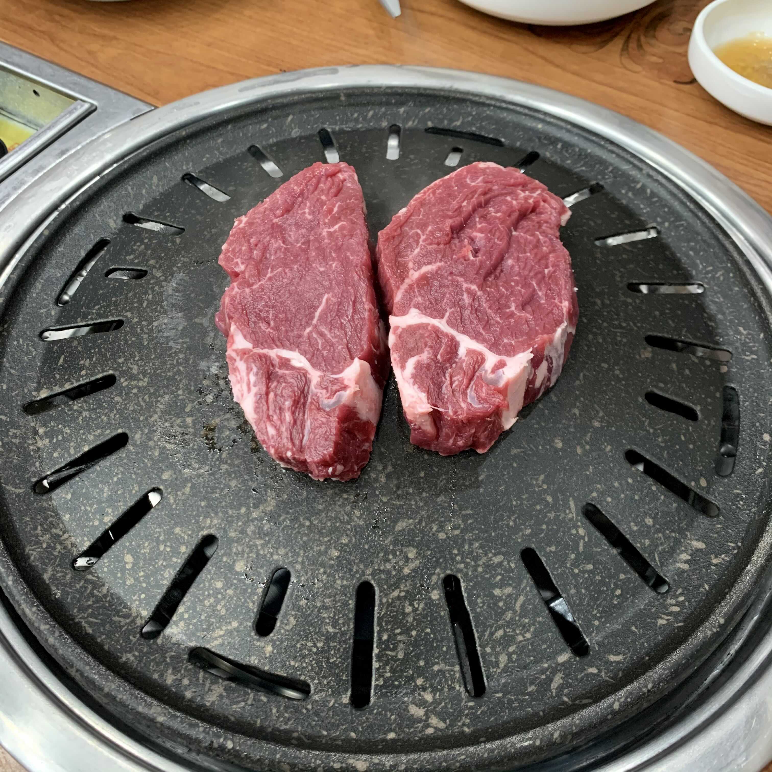 소고기를 올리기 전에 불판에