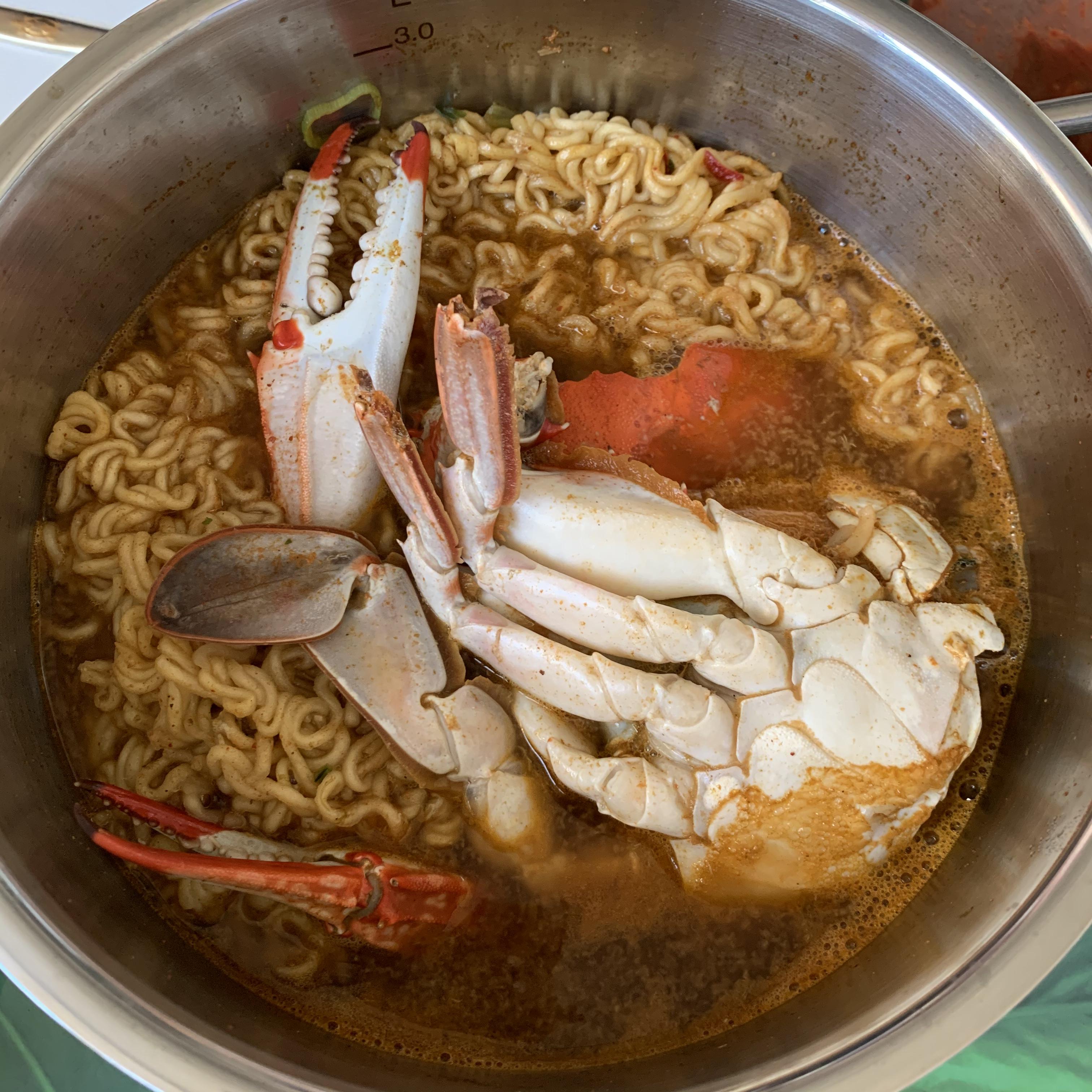 이렇게 꽃게 라면을 해 먹어봤어요!